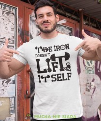 Męska koszulka na siłownie - The iron doesn't lift it self - Koszulka sportowa Crossfit Siłownia