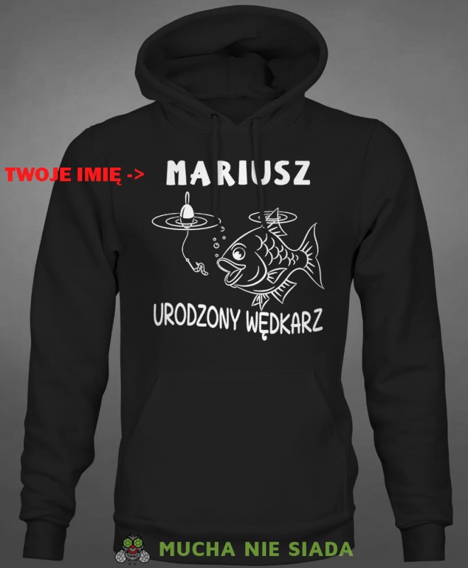 wedkarz, czarna męska bluza z kapturem dla wędkarza, na co dzień, na prezent, fajna bluza, wędkarstwo, na ryby, mucha nie siada, mns.jpg